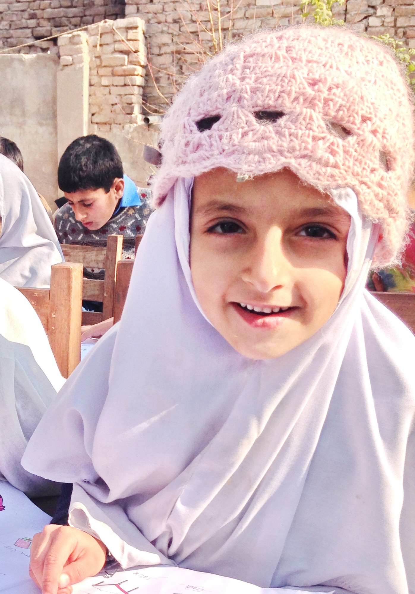 Hurya Khan is 5 years old. Hurya wants to become a teacher when she grows up. Hurya had never been to school before and is thoroughly enjoying her experience at school.